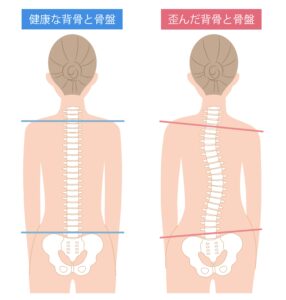 腰や背骨の左右非対称性、片方の腰が突出する